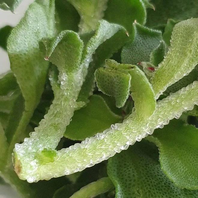 冰菜的叶片肥厚多汁,耐旱能力较强,但怕积水闷根。日常浇水需遵循“干透浇透”的原则,等盆土完全干透后再浇水。适当控水,能促进叶片表面“冰晶”结构的形成,提升口感和观赏性。