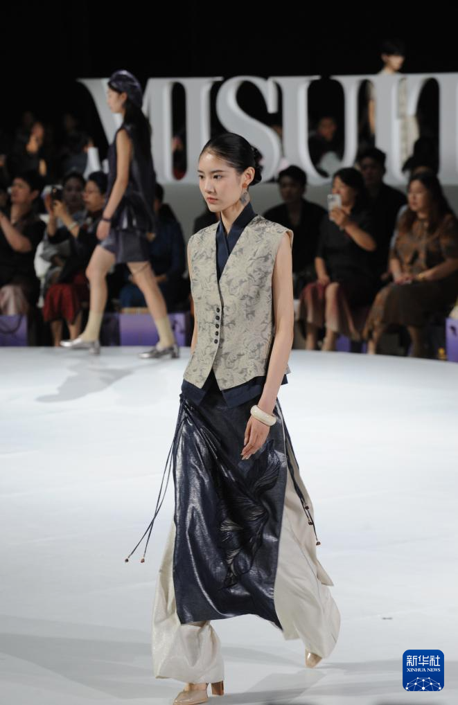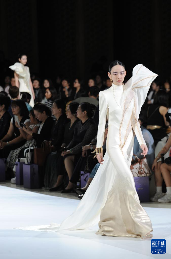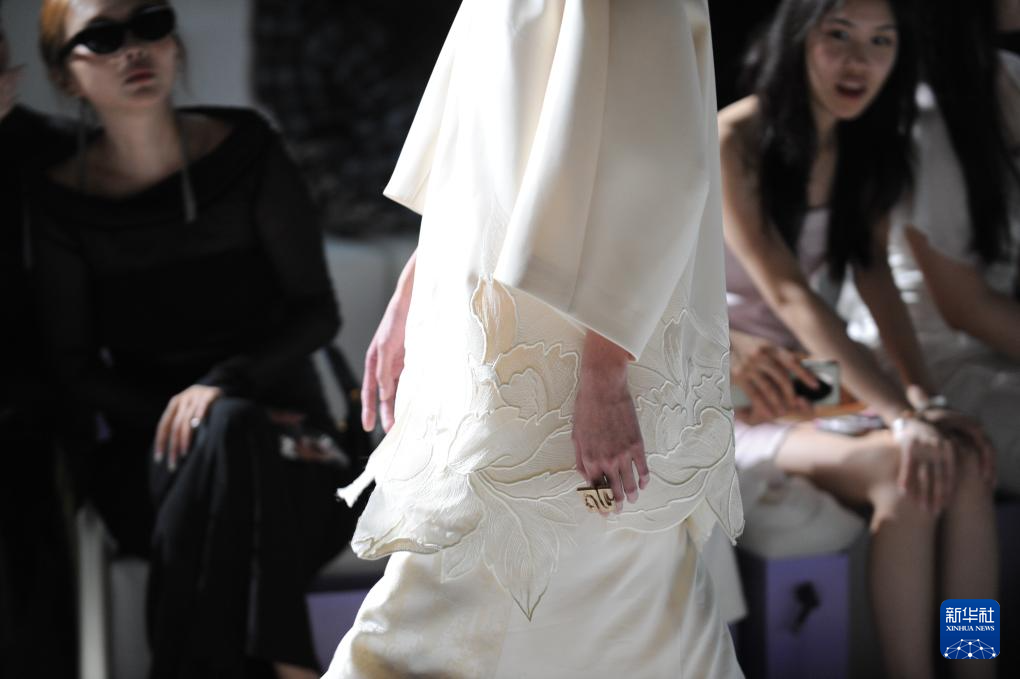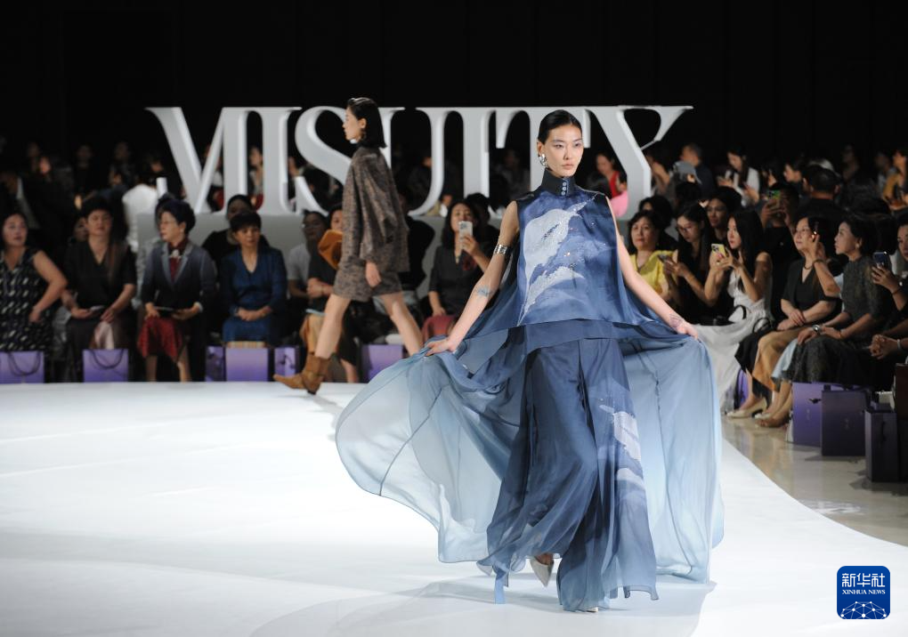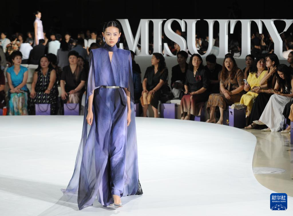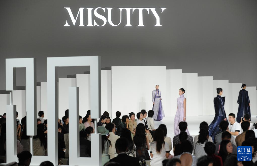 9月5日,模特在北京举行的2025中国国际时装周(秋季)开幕大秀上展示国奢品牌米休缇SS26系列时装。
