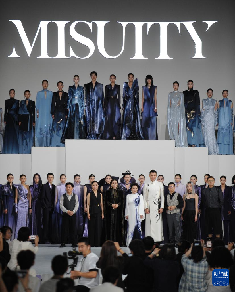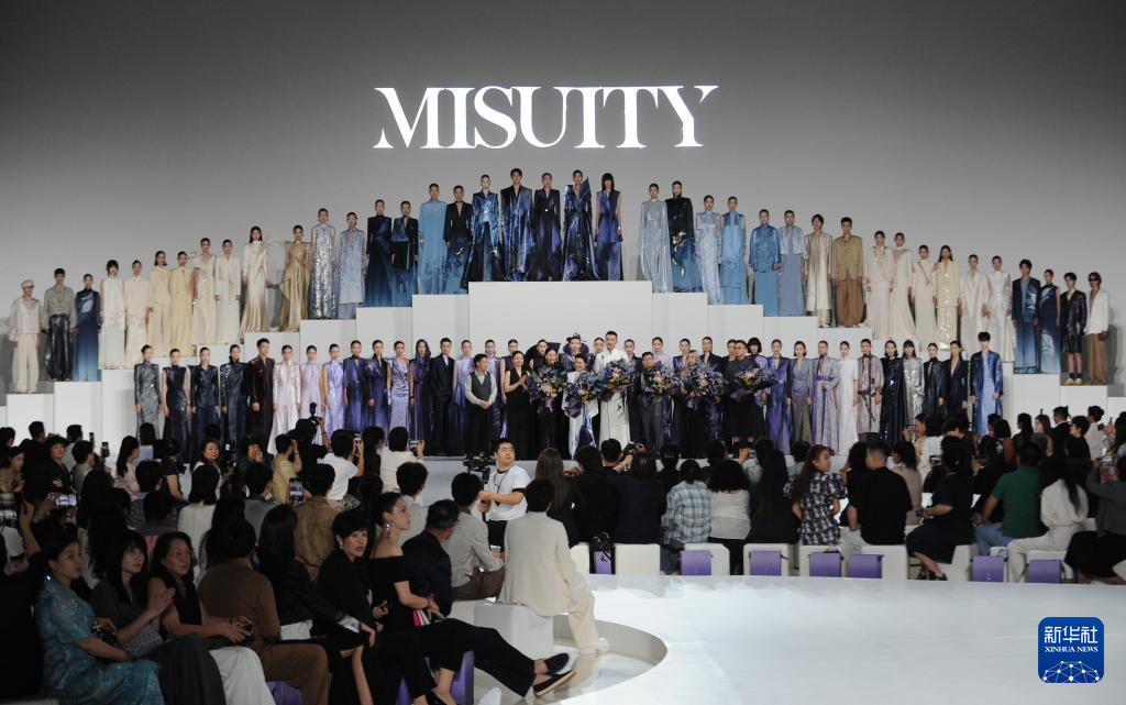 9月5日,设计师和模特在北京举行的2025中国国际时装周(秋季)国奢品牌米休缇SS26系列开幕大秀上谢幕。