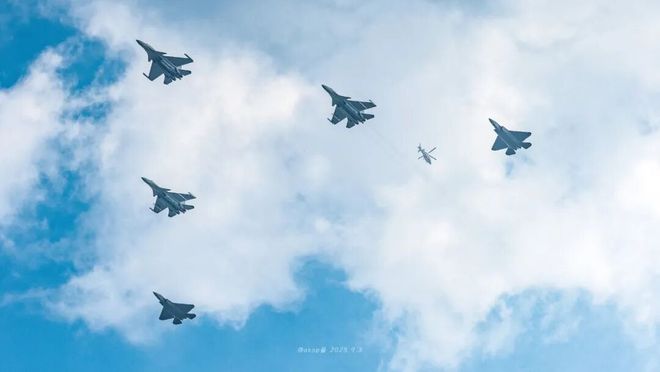 九三大阅兵上,空中梯队的六型第五代战斗机引起了外界关注,由歼-16D型随队电子战机、歼-20型和歼-35A型战斗机组成的混合战术编队,以及由歼-20S带队,歼-20和歼-20A组成的“歼-20家族”更是引人瞩目。