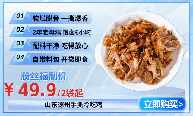 6小时焖炖脱骨,山东德州手撕冷吃鸡,酥香麻辣,一撕爆香!好吃到舔手指!点击下图购买